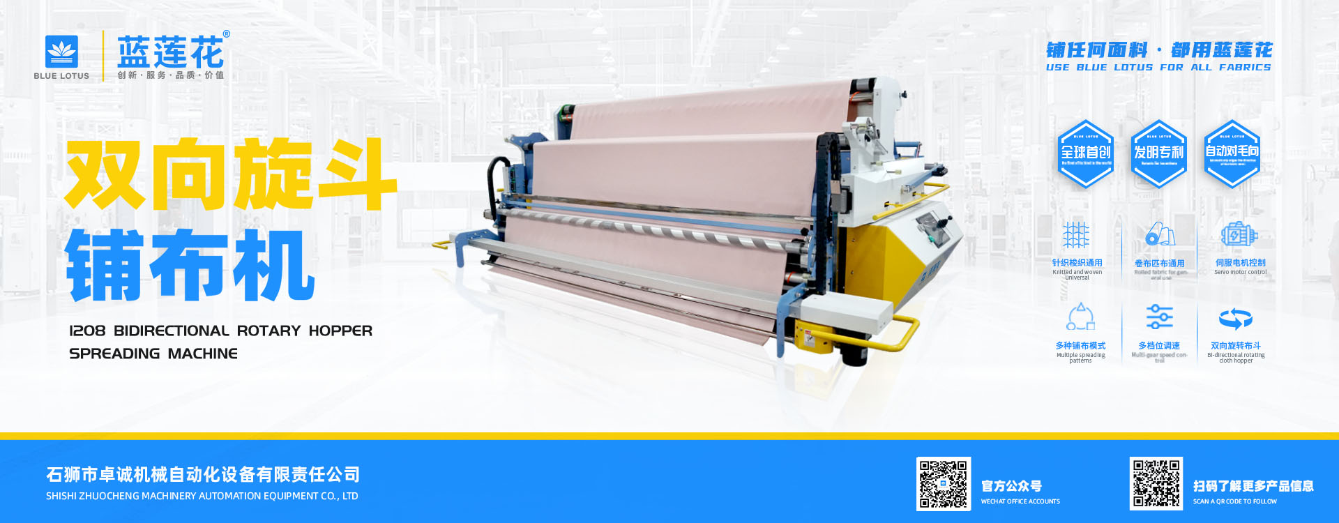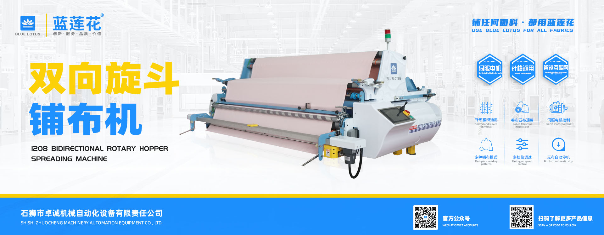我司結(jié)合市場自主研發(fā)的藍(lán)蓮花品牌拉布機(jī)擁有多項自主專利技術(shù),機(jī)器以小巧多功能易操作低維護(hù)為特點(diǎn),為業(yè)界提供性價比機(jī)型; 藍(lán)蓮花品牌拉布機(jī)以實用質(zhì)優(yōu)為特點(diǎn)自投產(chǎn)以來便在國內(nèi)贏得市場廣泛認(rèn)可。